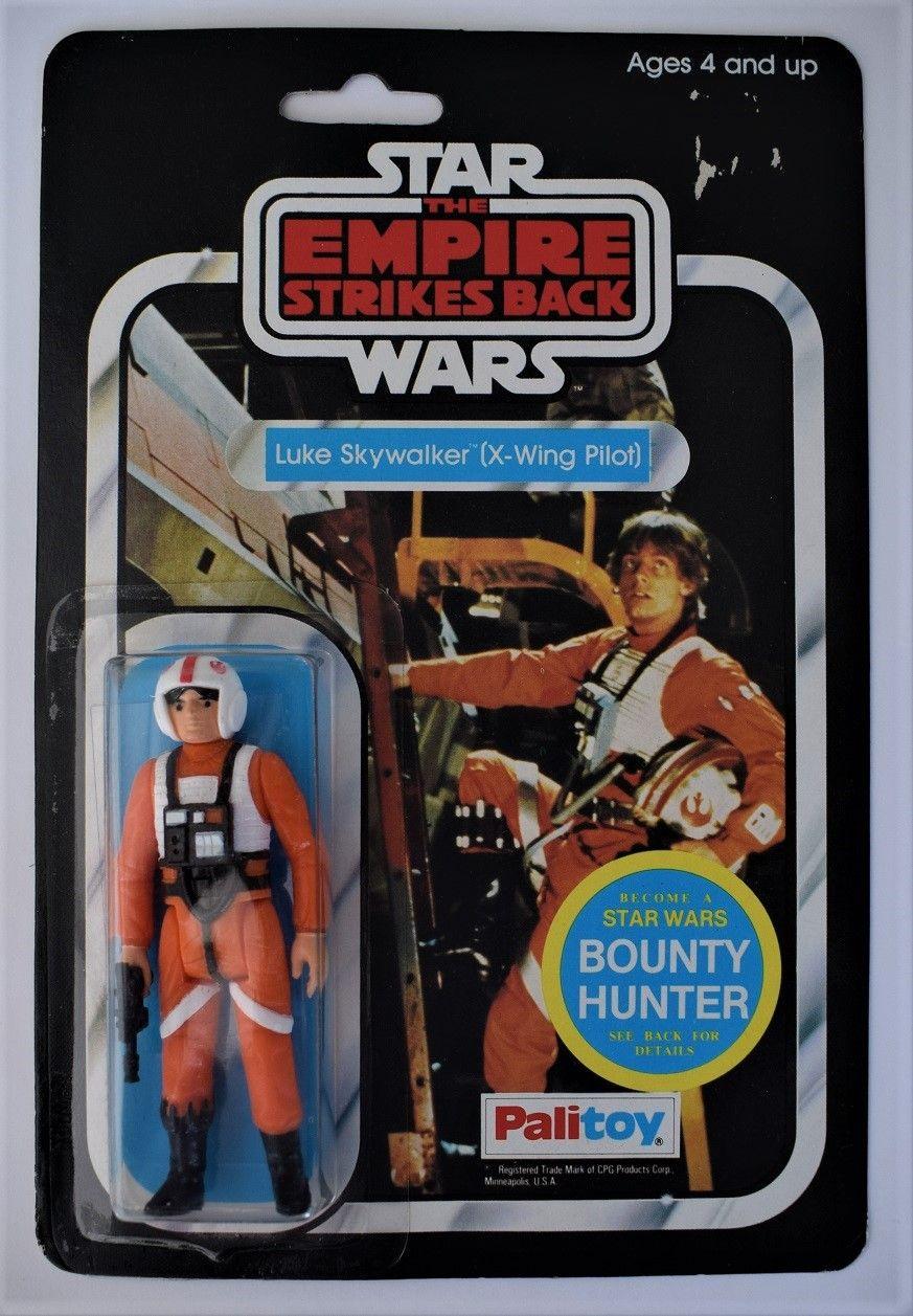 I have for sale a mint ESB 45a back Palitoy Luke X-Wing on a factory sealed card. The unpunched card is in excellent condition with a couple of litho tears from where the price sticker used to be. The bubble is ding free and crystal clear. A beautiful example of a very rare card. See pics for condition detail. Would also be willing to trade for other Palitoy logod carded figures.