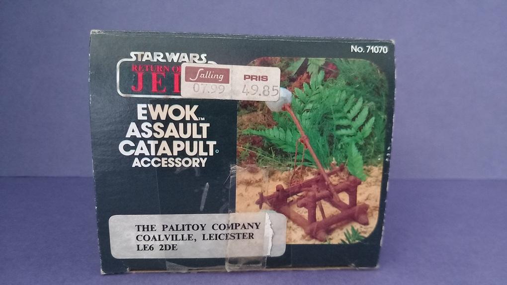 1. Ewok Catapult with palitoy sticker and a danish price sticker.